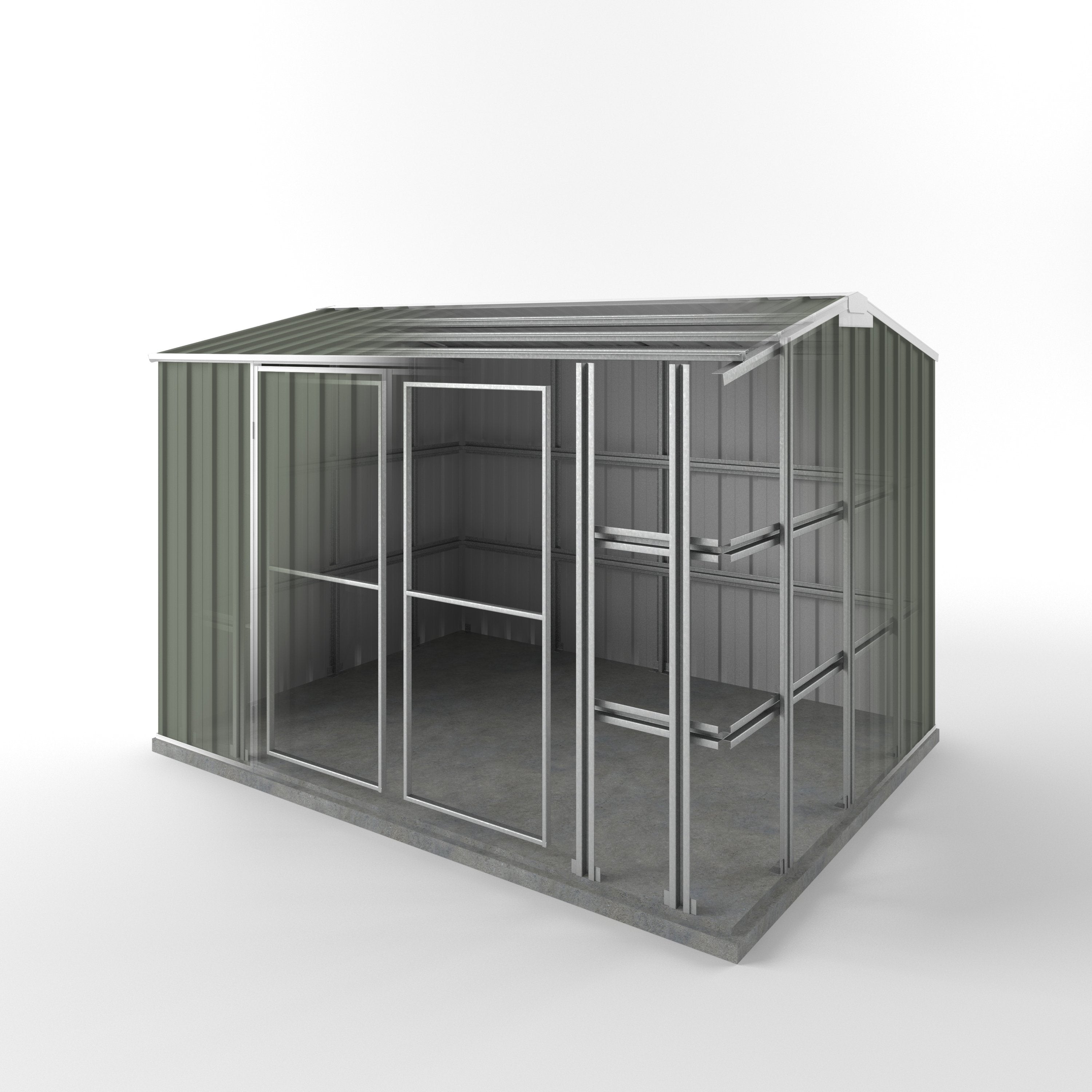 Storm Shed 3.00m (w) x 2.25m (d) - Mist Green / Standard - 2.05m is backordered and will ship as soon as it is back in stock.